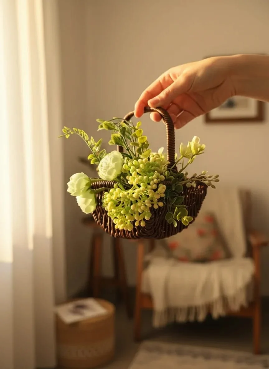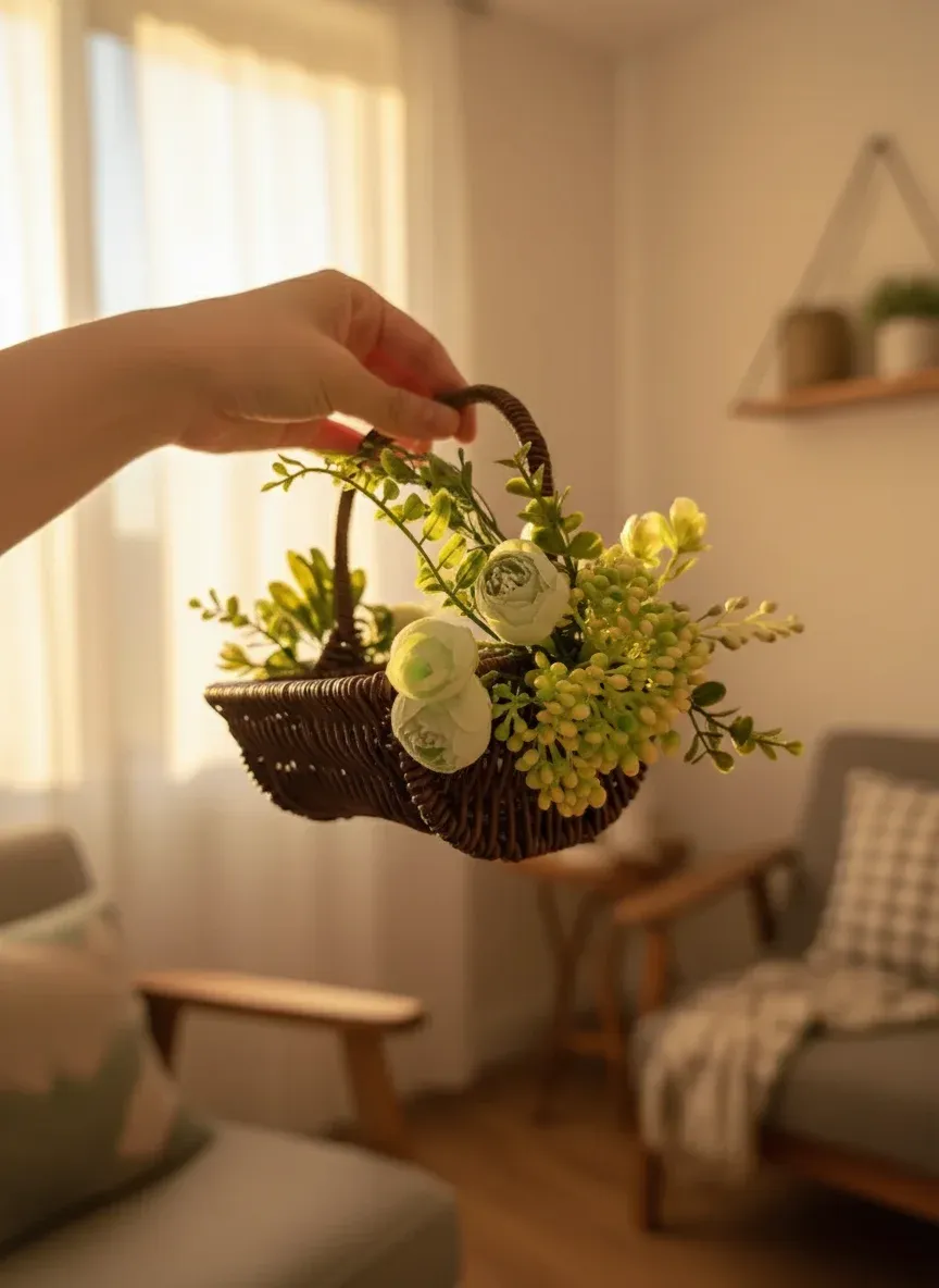 Wymiary koszyczka: 15x 25 cm z wystającymi elementami dekoracji