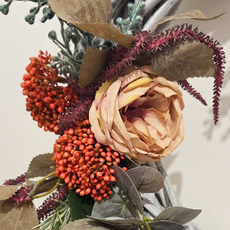 Wymiary kompozycji: śr. 60 cm wraz z wystającymi elementami.