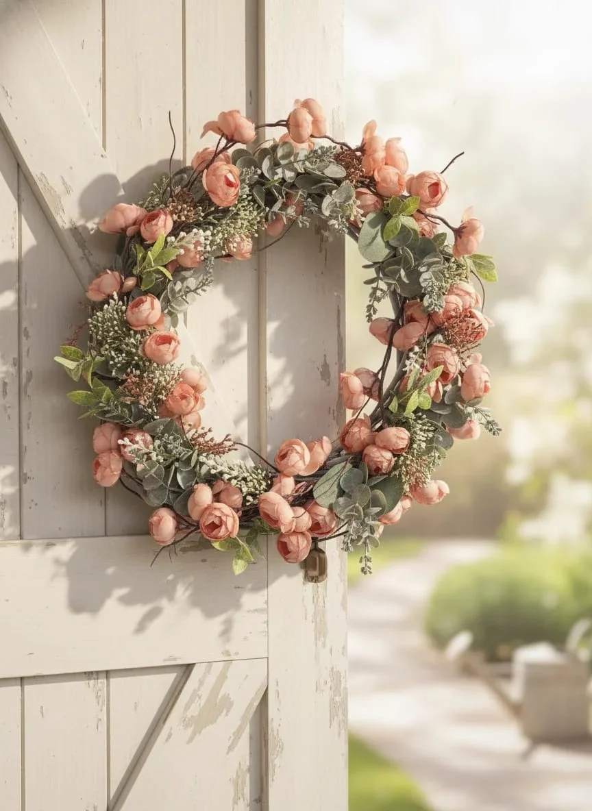 Rustykalna baza: Podstawę wianka stanowi solidna, pleciona wiklina o średnicy 40cm, nadająca całości rustykalnego i naturalnego charakteru.